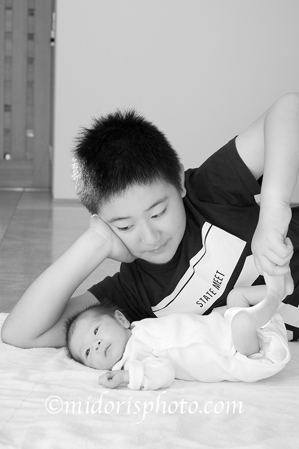 「子供ができたら緑さんに撮ってもらいたい」….って言ってくれていたKanaさんに待望の第二子。誕生日は、お兄ちゃんと同じ誕生日の予定だった。ちょっと早く出てきたから一緒の誕生日にはならなかったけど、全てが奇跡。目の中に入れても痛くないほど可愛い。12歳離れた弟を、ちいパパのごとくお世話するKaito君はめちゃかっこいい。オムツ替えだって、ウンチのお世話だってなんでもする、ともすると「ママは雑」って怒られる始末…笑。