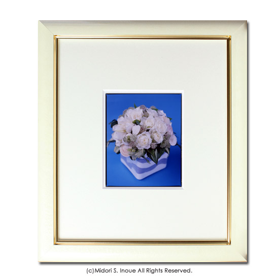 「Rose8 : August」(34.5cm×39.5cm)木製ベージュフレーム ゴールドライン入り